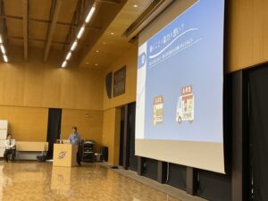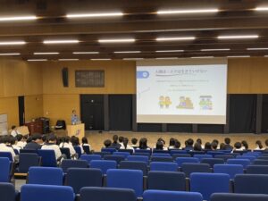 本講演会は大阪国際学園中学校の依頼に基づき、職業体験を目前に控えた中学2年生が、「働くこと」の意味や価値について主体的に考え、自分自身の仕事観を深める機会をつくり、普段は意識していない町中にある会社の様子や学校内にある多様な仕事にも目を向けることで、社会に対する理解を深め、「人間をみがく」学びへとつなげていくことを目的としています。
